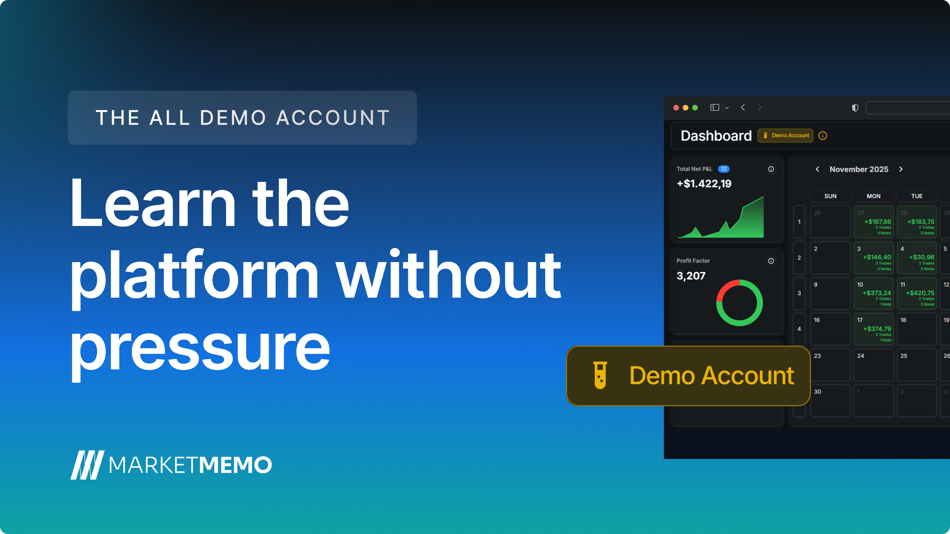 The Demo Account is a fully functional environment that allows traders to experience MarketMemo using simulated data.