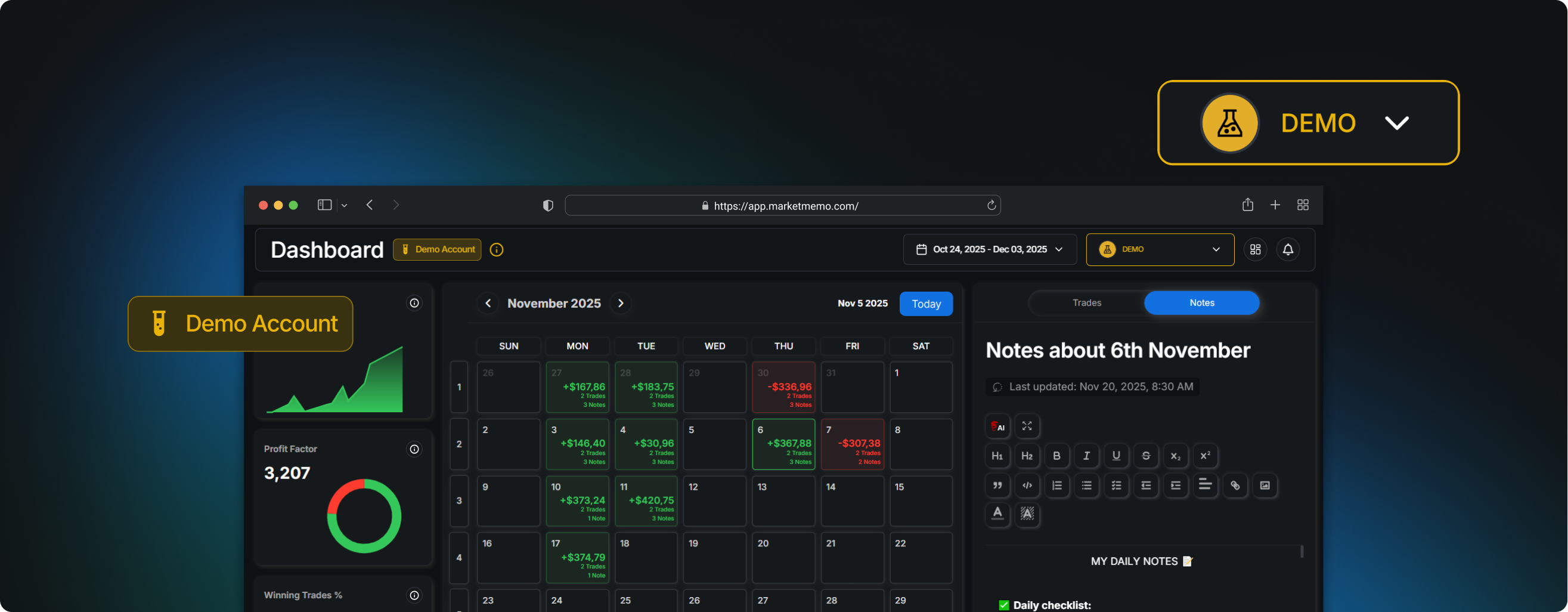 Try the MarketMemo Demo Account